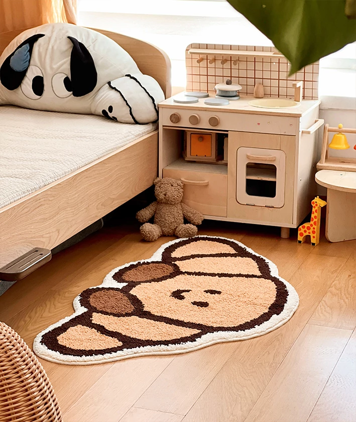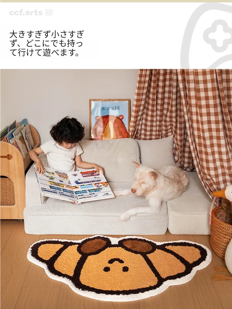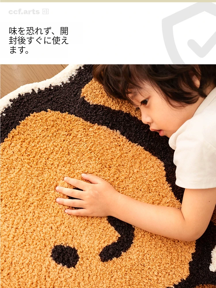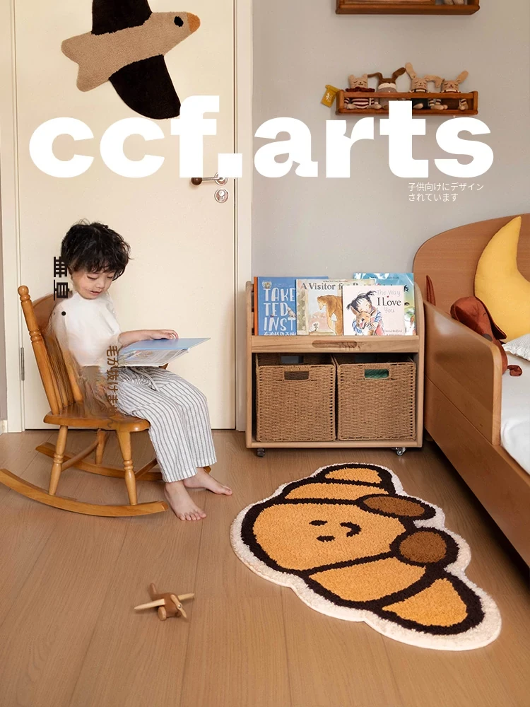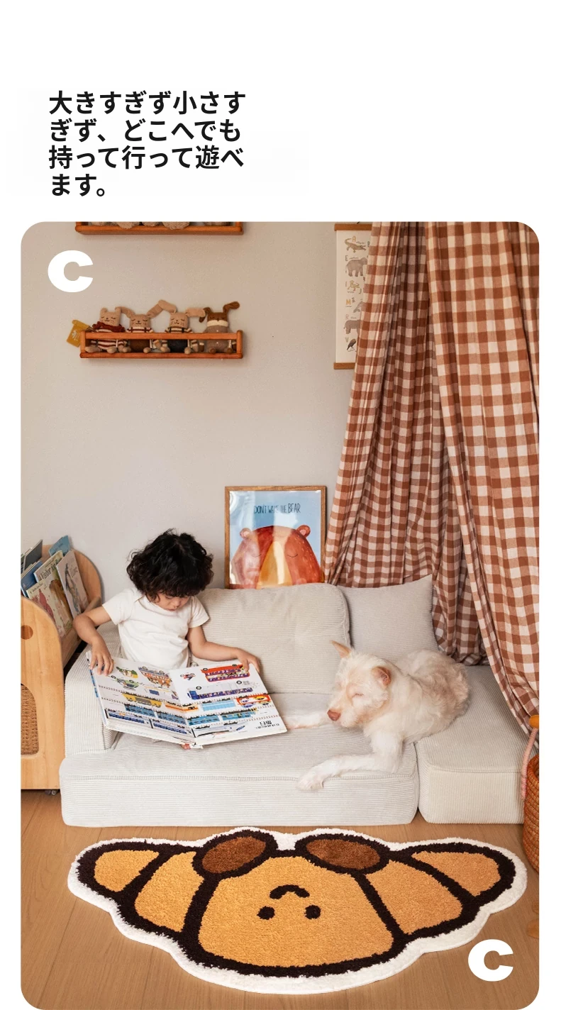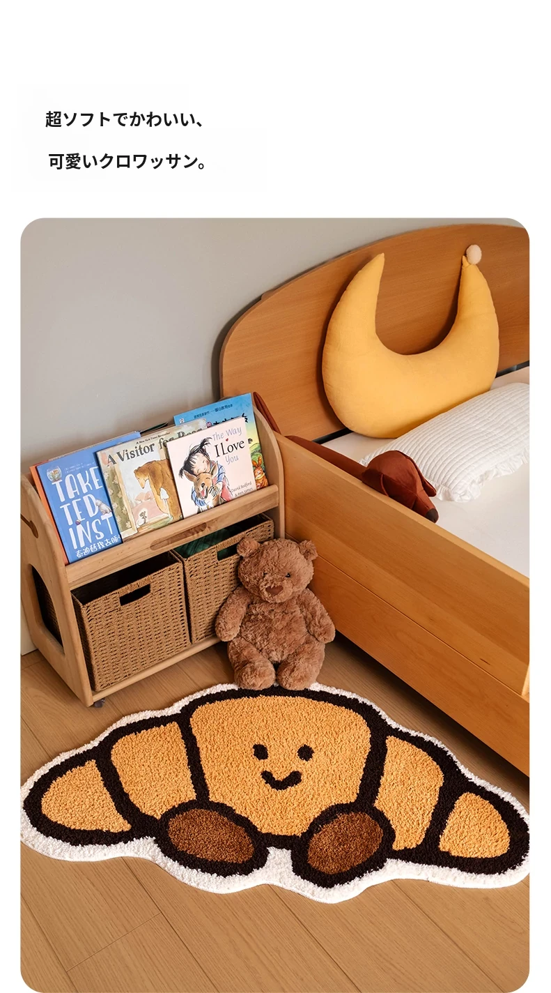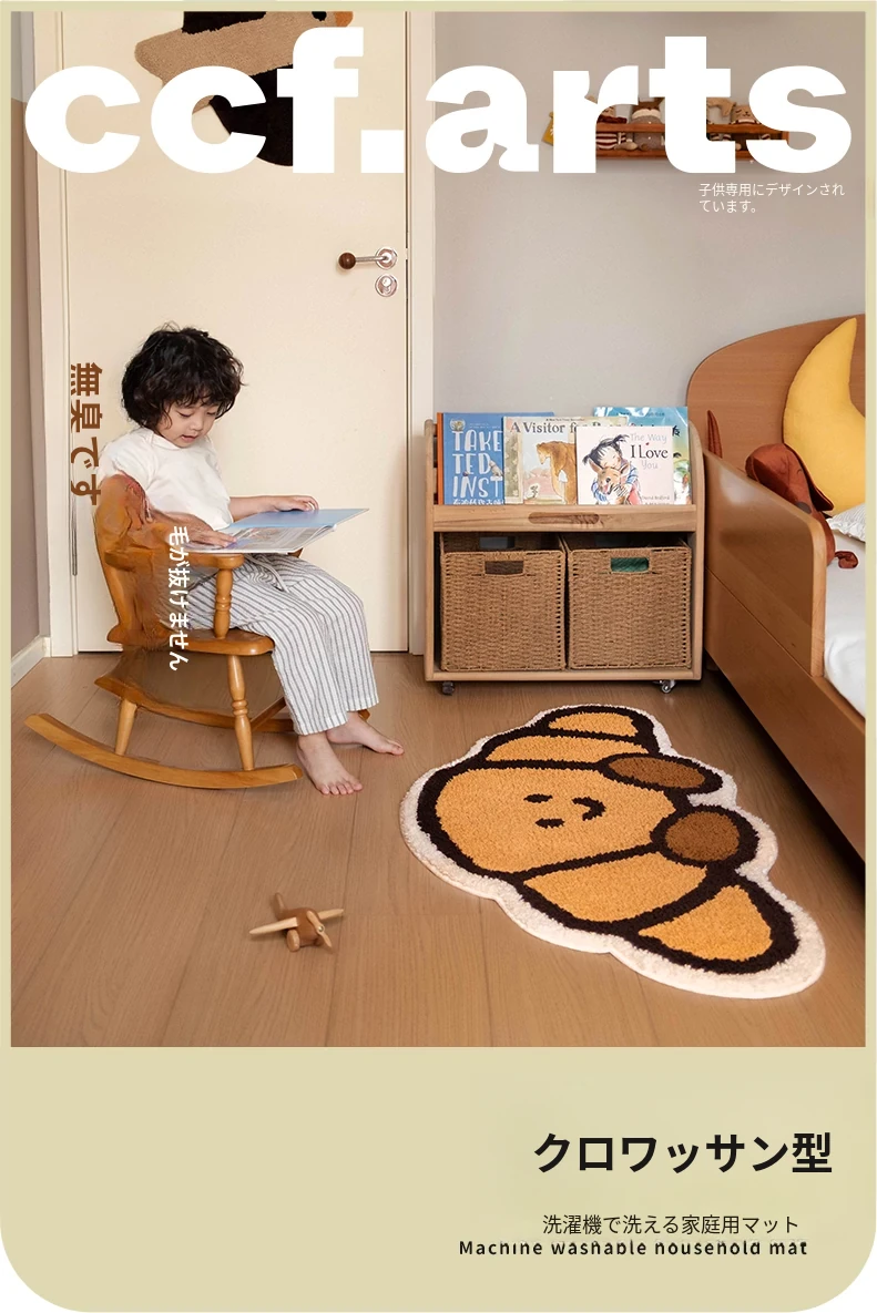 CCF カスタムクロワッサン型カーペット - 無害で洗える!子供部屋やベッドサイドに最適なかわいいデザイン。アレルギー対策もバッチリ、安心して使えるインテリアマット!