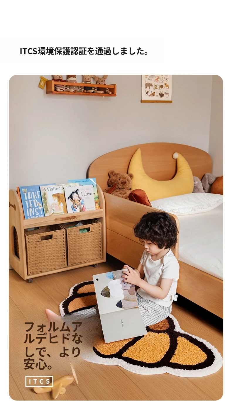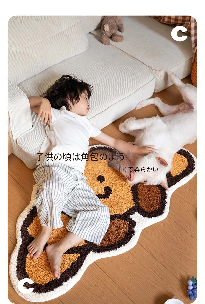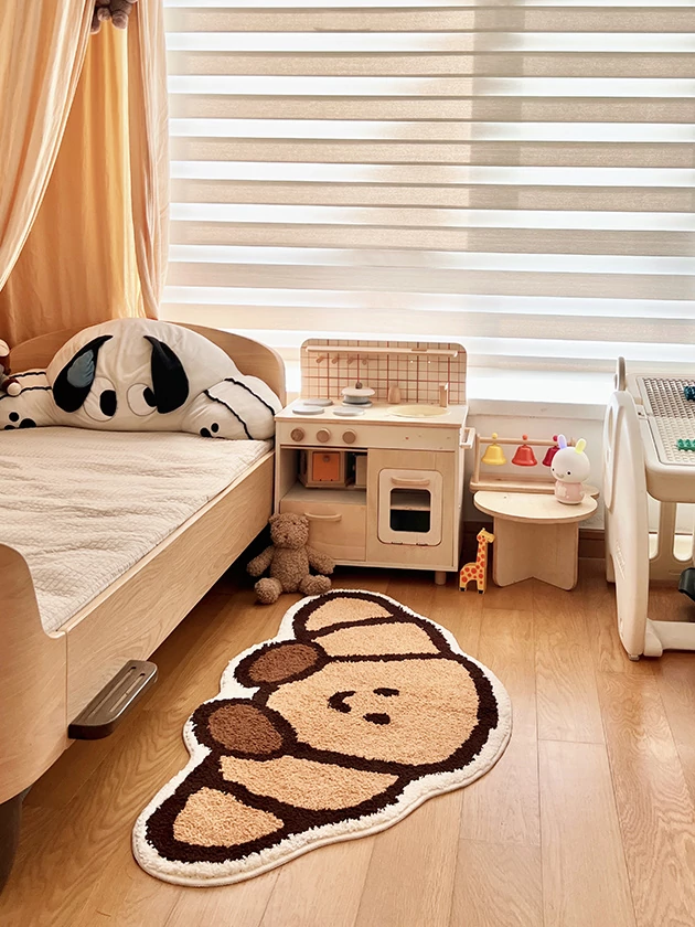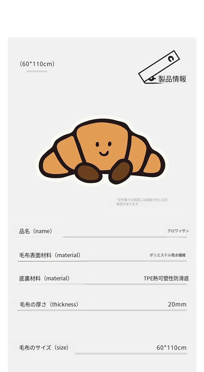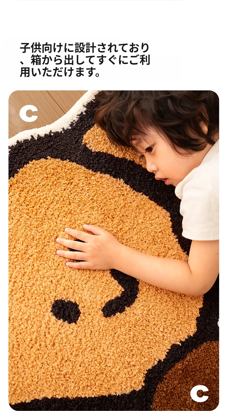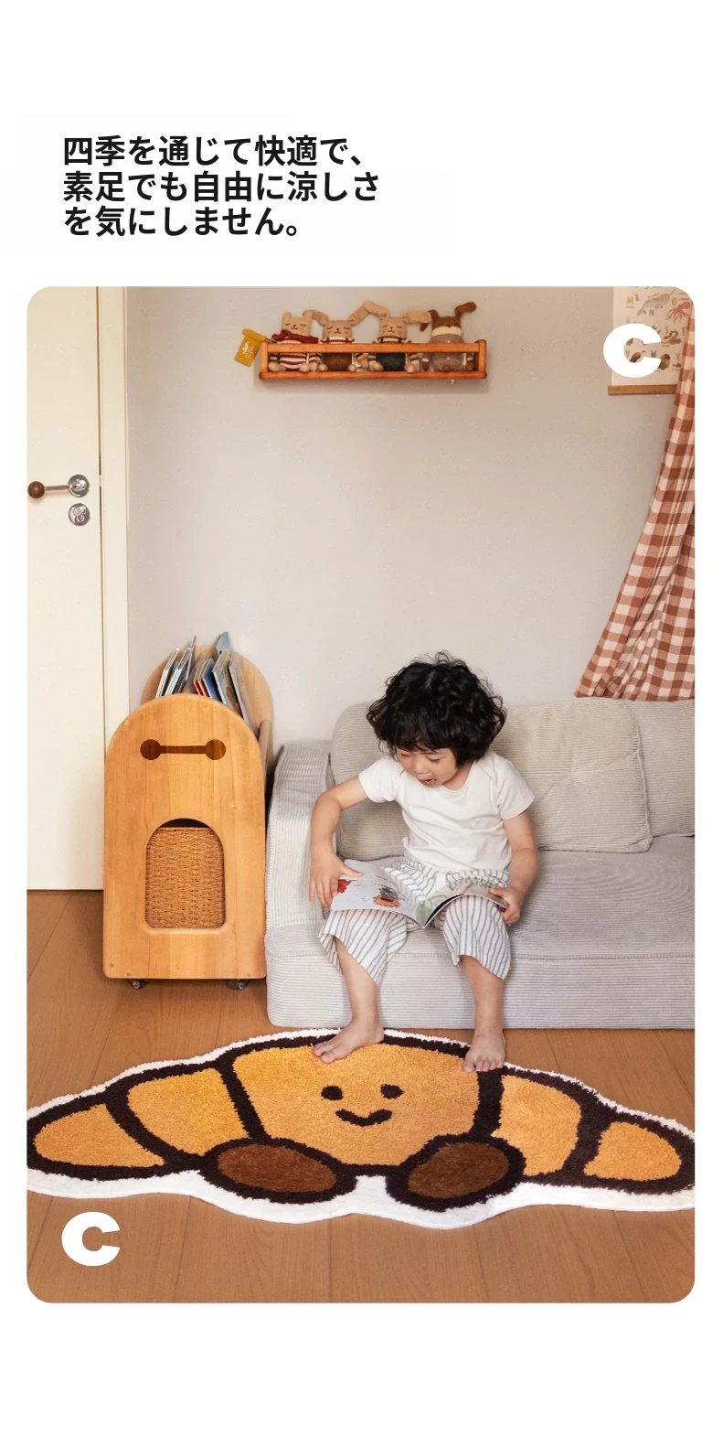 CCF カスタムクロワッサン型カーペット - 無害で洗える!子供部屋やベッドサイドに最適なかわいいデザイン。アレルギー対策もバッチリ、安心して使えるインテリアマット!
